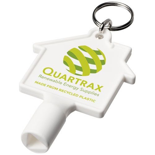 Clé utilitaire avec porte- clé pour une utilisation sur des appareils tels que les radiateurs, compteurs, poteaux électriques. Fabriqué à partir de plastique recyclé. L’ouverture consiste en un triangle de 8 mm de côté. En raison de la nature du plastique recyclé, les nuances de couleur peuvent varier légèrement et il peut y avoir des taches de couleur. Fabriqué au Royaume- Uni.