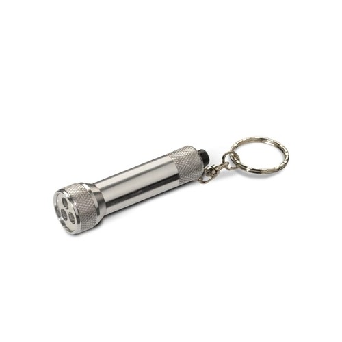 Lampe torche métal incluant trois LED et attache porte- clés. Piles incluses.