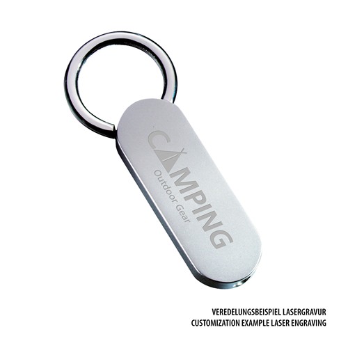 Simplicité et élégance : ce porte- clés en métal offre une surface de gravure parfaite que vient compléter un anneau solide.