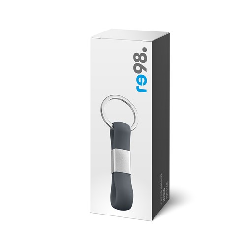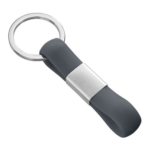 Un produit phare sur le trousseau de clés avec un toucher agréable. La sangle en silicone en gris a un bracelet argenté en métal. Mettez votre logo en scène à la perfection avec une gravure laser élégante.