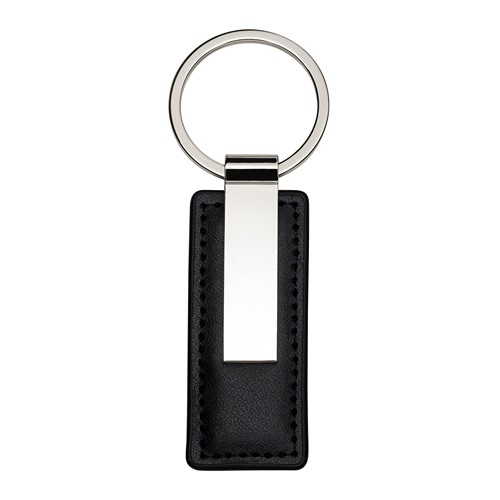 Une belle alternative moins onéreuse que le classique en cuir, ce porte- clés rectangulaire en matière synthétique affiche une surpiqûre et une plaque gravée en métal brillant.