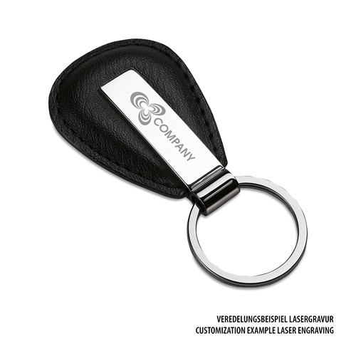 Une belle alternative moins onéreuse que le classique en cuir, ce porte- clés arrondi en matière synthétique affiche une surpiqûre et une plaque gravée en métal brillant.