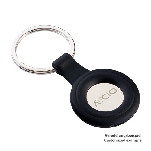 Le porte- clés noir avec un anneau rond en silicone se caractérise d'une part par son toucher agréable et d'autre part par son jeton de caddie utilisable. La puce métallique du caddy peut être poussée hors de l'anneau en silicone et remise en place au fond de l'anneau en silicone après utilisation. Un anneau fendu robuste en métal permet de maintenir vos clés de manière éprouvée. Le caddy chip peut être personnalisé par une noble gravure au laser, ce qui permet à votre logo d'être toujours bien visible sur votre porte- clés.