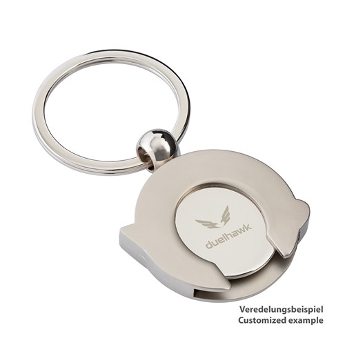 Ce magnifique porte- clés en métal en forme de globe terrestre est doté d'un robuste anneau avec une fente et combine un aspect argenté mat avec une fonction utile. Un jeton de caddie en argent brillant est intégré à l'arrière. Mettez votre logo en avant en choisissant une gravure laser de haute qualité et attachez ce support publicitaire unique à votre porte- clés.