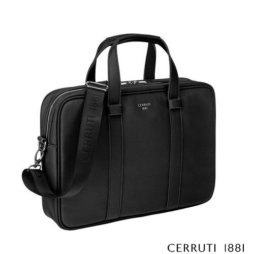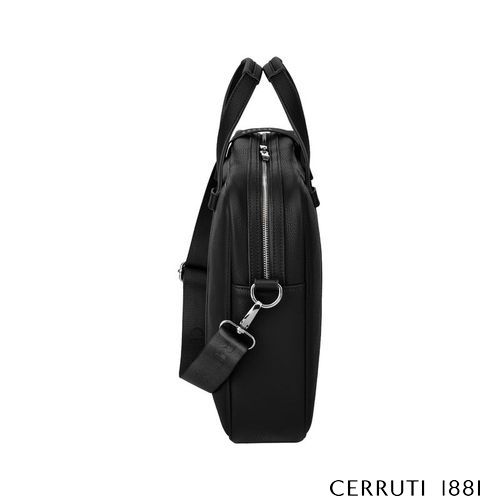 The Jefferson document bag in black with chrome trims embodies a classical and elegant interpretation of a timeless work and travel accessory. Its minimal silhouette is both functional and exhaustive, allowing perfect organisation of essentials through a dedicated laptop compartment, a zipped inside pocket, and a beautifully arranged interior lined with a monogramed signature pattern. Crafted from a carefully chosen matte- grained texture, it balances simplicity with luxurious detailing. Chrome metal accents elevate the design, highlighted by the new Cerruti 1881 plate celebrating the updated logo and the new angular RR zipper pullers that add a precise, refined finishing touch. A retractable and adjustable webbing strap signed with the logo completes this most timeless, classical, and minimal expression of elegance.