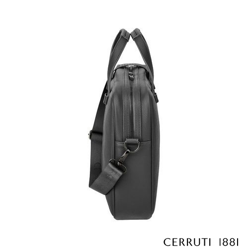 The Jefferson document bag in dark grey with gunmetal trims expresses understated elegance and a pure minimalist attitude. Its timeless, minimal shape is complemented by exhaustive functionality: a dedicated laptop compartment, a zipped inside pocket, and a monogramed lining that ensures perfect organisation for work or travel. The refined matte- grained texture offers a subtle tactility, enhanced by luxurious gunmetal accents, including the new Cerruti 1881 plate and the angular RR zipper pullers that enrich the design with quiet sophistication. A retractable and adjustable webbing strap signed with the logo reinforces this impeccably crafted, classical, and minimalist companion.