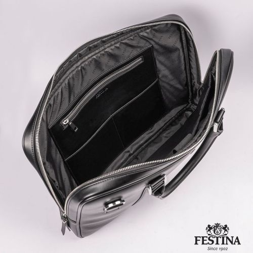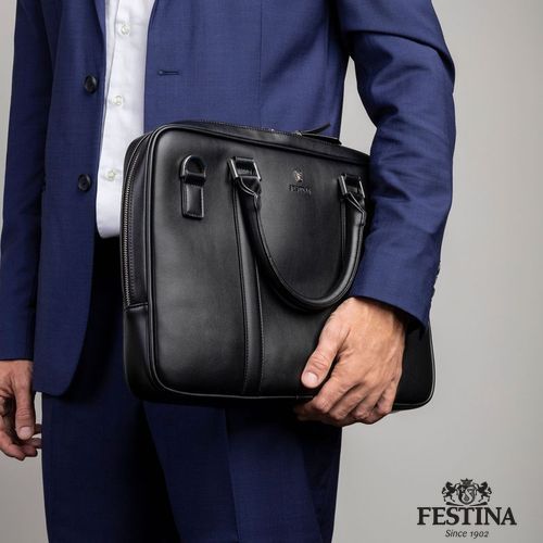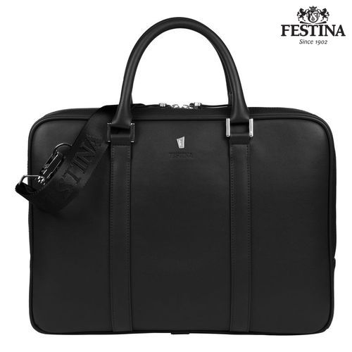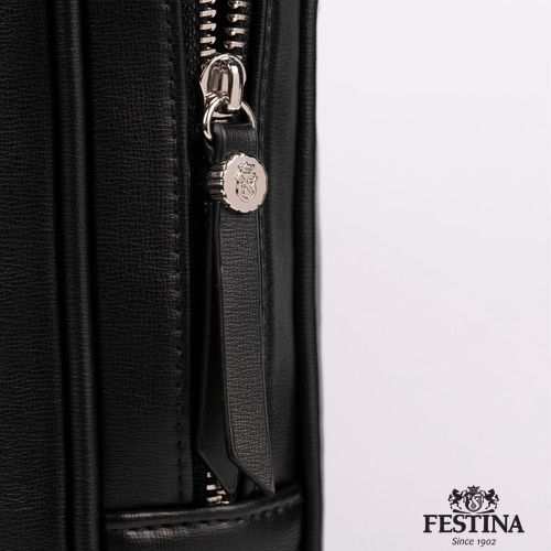 La ligne de voyage Festina "Classicals" est déjà une icône. Chaque détail de ce produit a été soigneusement conçu et réalisé, dans le but d'offrir un accessoire pratique, luxueux et facile à porter qui sera le compagnon idéal de vos voyages ou de vos journées de travail. La ligne est fabriquée en cuir végétalien magnifiquement texturé. Chaque produit est signé par l'emblématique plaque de signature "F", soulignée par un logo festina en relief. Les nouvelles tirettes de fermeture à glissière iconiques, inspirées du bouton d'arrêt de la montre maison Festina, gravées du blason Festina et ornées de cuir végétalien ajoutent une touche de luxe discret. L'intérieur a été soigneusement conçu, avec sa doublure monogrammée et son compartiment zippé qui permet une organisation parfaite de vos essentiels quotidiens. Il dispose également d'un compartiment spécifique pour ordinateur portable. Il est livré avec une sangle détachable, également marquée du logo Festina, et permettant de porter le sac comme un crossbody. Cette version noire, avec ses garnitures en métal chromé, est un véritable classique avec lequel on ne peut pas se tromper.