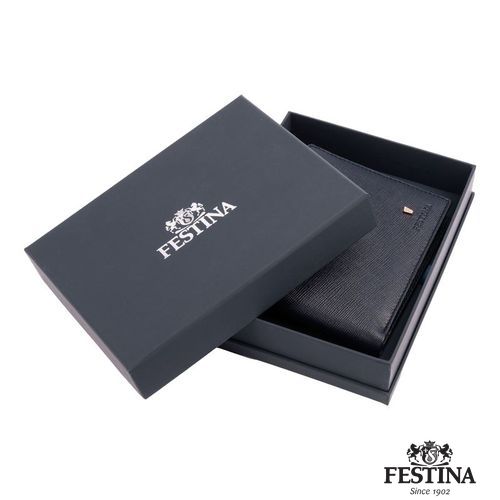 La ligne de petite maroquinerie "Chronobike" est fabriquée en cuir véritable choisi minutieusement avec une texture saffiano. Cette version bleue est ornée de la signature iconique du logo F en forme de trapèze, de couleur rose gold. Il est souligné par le nom de Festina embossé dans le cuir. Ce portefeuille- cartes à l'allure minimaliste est compact et très pratique, avec un total de 12 fentes pour cartes, et un compartiment à billets séparé en 2 parties.