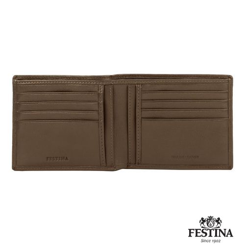 La ligne de petite maroquinerie "Chronobike" est réalisée en cuir véritable soigneusement sélectionné, avec une texture safiano. Cette nouvelle version camel est ornée d'une signature en chrome vif, pour un look intemporel. La signature iconique, le logo F de forme trapézoïdale, a été réduite à la plus petite échelle possible, pour donner à la ligne une touche de finition luxueuse, tout en permettant une utilisation optimale. Elle est soulignée par un logo Festina magnifiquement embossé. Ce porte- cartes est minimal, compact et très pratique, avec un total de 12 emplacements pour cartes, et un compartiment pour billets de banque séparé en 2.