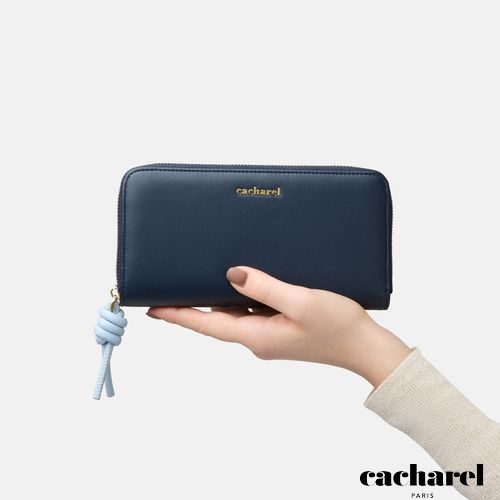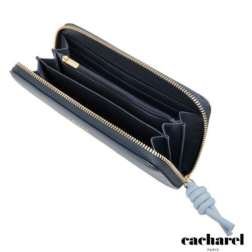 Le portefeuille Apolline, de couleur marine, est fabriqué en cuir végétal (PU) souple, mat et de haute qualité, et présente d'élégantes bordures dorées pour une finition raffinée. Signé d'un logo TPU doré sur le devant, ce portefeuille allie luxe et praticité. La tirette de fermeture éclair en forme de nœud bleu clair ajoute une touche ludique au design classique du portefeuille. Doux, coloré et ludique, le portefeuille Apolline complète parfaitement la collection de sacs Apolline.