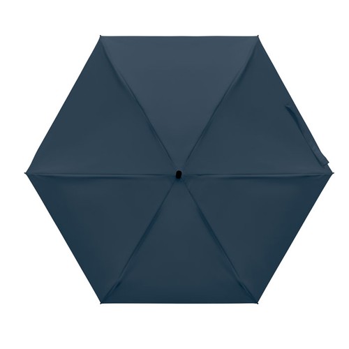 Parapluie manuel de 19'' à 5 plis en pongé 190T pochette assortie. Doté d'une armature métallique et en fibre de verre résistante au vent, poignée caoutchoutée noire avec sangle compacte de 17 cm pliée