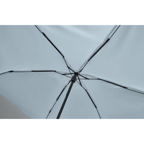 Parapluie manuel de 19'' à 5 plis en pongé 190T pochette assortie. Doté d'une armature métallique et en fibre de verre résistante au vent, poignée caoutchoutée noire avec sangle compacte de 17 cm pliée