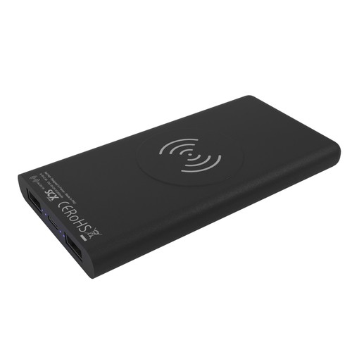Powerbank ultra fin et ultra léger en ABS recyclé avec une large capacité de 10 000 mAh et double sortie USB 2A.