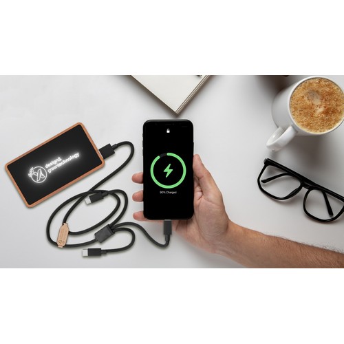 Tout est inclus : personnalisation, coffret cadeau en carton recyclé et câble chargement 3- en-1 en rPET.
