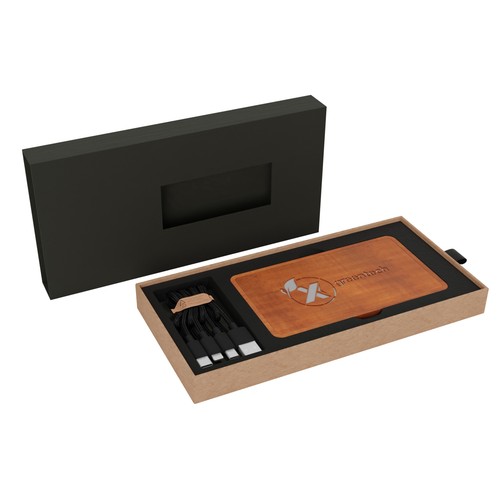 Tout est inclus : personnalisation, coffret cadeau en carton recyclé et câble chargement 3- en-1 en rPET.