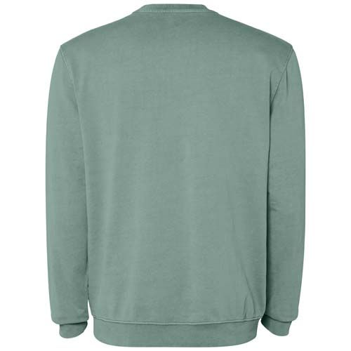 Pull unisexe avec finition délavée. Col, poignets et ourlet côtelés 2x1 ton sur ton. Coutures renforcées aux poignets, à l'ourlet, à la taille et aux emmanchures. Point de recouvrement ton sur ton à l'encolure.
