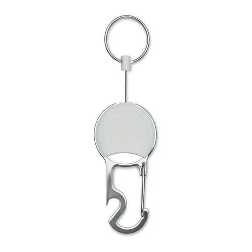 Porte- badge rétractable en ABS avec clip, porte- clés et décapsuleur.