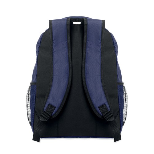 Sac à dos pour ordinateur portable 15 pouces en polyester 600D RPET avec compartiment intérieur rembourré pour l'ordinateur portable, poches en filet sur les deux côtés et poche frontale à fermeture éclair.