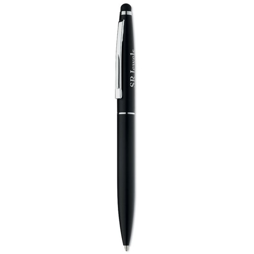 Stylo bille twist en aluminium avec finition mate et embout sensible. Encre bleue.