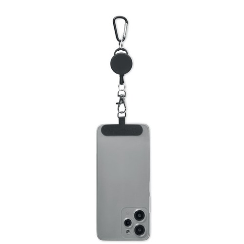 Porte- téléphone et/ou porte- badge rétractable en ABS avec mousqueton en aluminium. Le mousqueton n'est pas destiné à l'escalade (usage non professionnel).