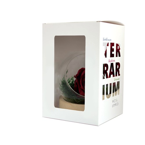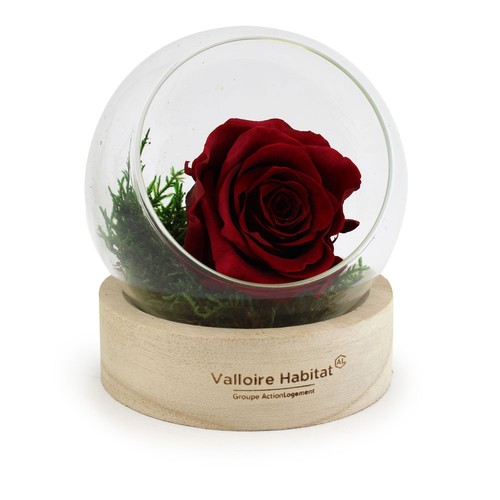Rose éternelle en terrarium socle bois