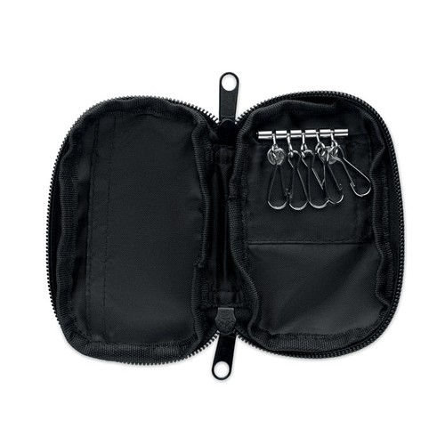 Trousse à clés avec fermeture éclair en RPET 300D avec doublure en RPET 210D. Comprend 5 porte- clés.