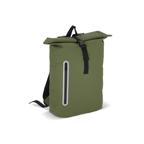 Ce sac à dos enroulable est fabriqué en PET recyclé enduit de PU et en matériau 600D. Il est doté de bandes réfléchissantes, ce qui renforce la sécurité lors des trajets dans l'obscurité. Il comprend une poignée, des bretelles rembourrées réglables et un compartiment rembourré pour ordinateur portable à l'intérieur.