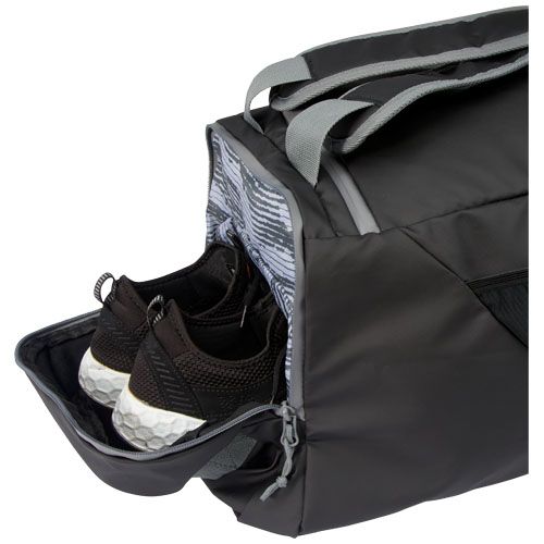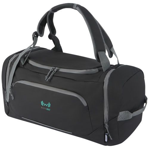 Sac à dos 2- en-1 résistant à l'eau fabriqué à partir de matériaux recyclés certifiés GRS, y compris les fermetures éclair. Il dispose d'un compartiment principal spacieux avec une ouverture en forme de U pour un rangement et un accès faciles, de deux poches latérales zippées (y compris un compartiment pour chaussures), d'une poche frontale zippée, d'une poche à eau en maille à l'arrière et d'un passepoil réfléchissant pour plus de visibilité. Ce sac peut être transporté de 3 manières différentes : À la main, sur l'épaule, ou comme sac à dos avec ses bretelles rembourrées et réglables. Les matériaux recyclés GRS comprennent le tissu principal, la doublure, la sangle et les fermetures éclair. Capacité : 35 litres. Sans PVC.