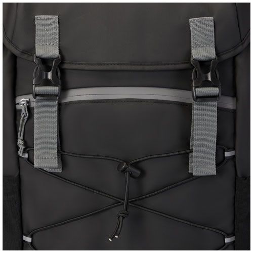 Sac à dos pour ordinateur portable résistant à l'eau fabriqué à partir de matériaux recyclés certifiés GRS, y compris les fermetures éclair. Il dispose d'un compartiment spacieux pour ordinateur portable de 15,6 po avec un cordon de serrage et des boucles réglables pour maximiser l'espace de rangement sous le couvercle à rabat. Ce sac à dos dispose de plusieurs poches, y compris une poche frontale zippée avec des cordons de serrage élastiques pour le rangement et l'organisation, et un passepoil réfléchissant pour la visibilité. Le support moulé et rembourré et la sangle de poitrine réglable le rendent confortable à transporter même lorsqu'il est complètement chargé. Les matériaux recyclés GRS comprennent le tissu principal, la doublure, la sangle et les fermetures éclair. Capacité : 23 litres. Sans PVC.