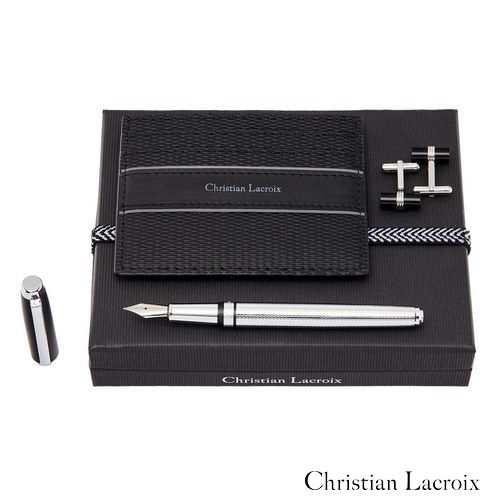 Set Porte-cartes Caprio Black + Boutons de manchette Whiteline Black + Stylo bille Caprio Chrome Diamond