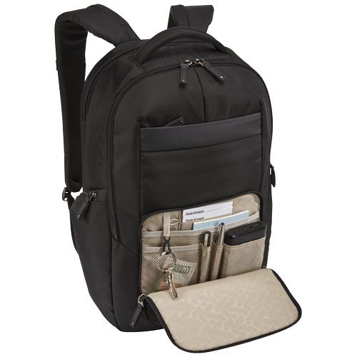 Dispose d’un grand compartiment principal zippé avec un logement matelassé pour ordinateur portable de 15,6" et tablette de 10,1", ainsi que d'une pochette en maille filet zippée pour les câbles et accessoires. Comprend un panneau d’organisation avant pour le stockage de petits appareils électroniques, câbles, accessoires, cartes de visite et clés. Avec poches latérales extensibles pour bouteille d’eau ou batterie externe, bretelles rembourrées, panneau arrière matelassé en maille respirante, une poignée souple et un passant trolley. Garantie Case Logic : 25 ans.