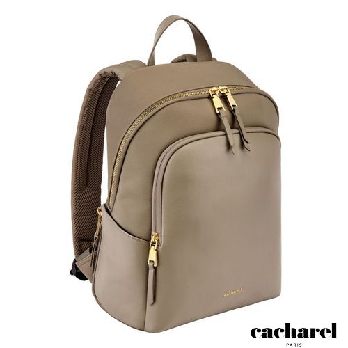The Olympe Backpack is a minimalist piece elevated by a refined softness, crafted in contrasting nylon and high- quality vegan leather kept tone- on- tone for a clean, understated aesthetic. Its luxurious gold signature and accents stand out against the sleek silhouette, while smart functionality comes through a front zipped compartment, a spacious main section with multiple pockets—including a secure zipped one—and two highly practical side pockets. Designed for comfortable daily use, it features a padded back panel with a discreet zipped compartment for valuables, along with padded shoulder straps. Available in a beautiful palette of black, beige, and grey.