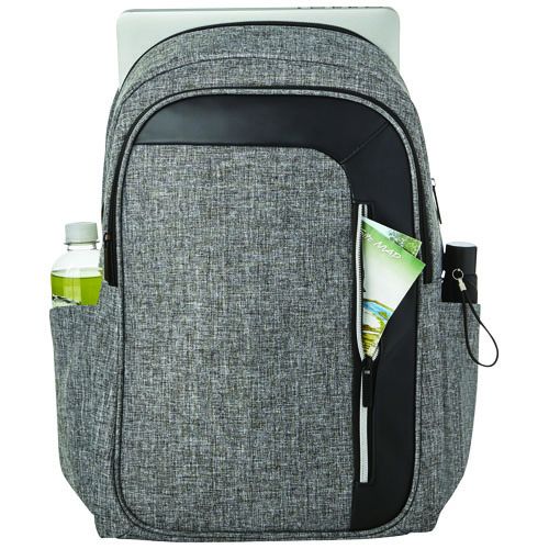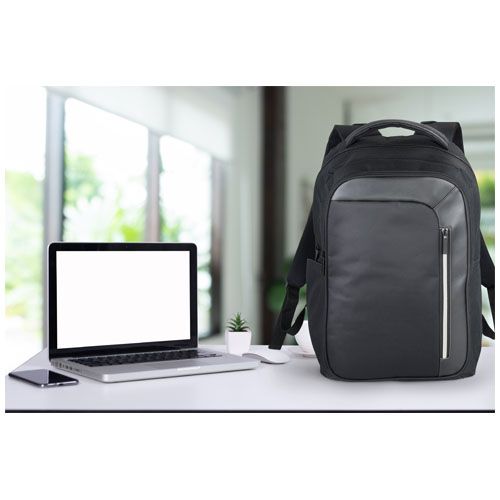 Cet élégant sac à dos ordinateur 15" au design contemporain dispose d'une grande poche frontale zippée avec attache- clés et d'une poche cachée RFID afin de protéger vos cartes de crédit et votre passeport contre le vol de données. Le large compartiment principal zippé peut contenir un ordinateur 15" et dispose d'un compartiment matelassé séparé pour tablette. Le zip vertical sur le devant du sac vous permet un accès rapide à la poche frontale. 2 poches latérales supplémentaires permettent plus d'espace de rangement. Les bretelles sont ajustables et confortables et vous pouvez y fixer des articles de voyage. La poignée de transport et le panneau pour trolley faciliteront votre voyage. Il peut y avoir des variations mineures dans la couleur du produit en raison de la nature des teintures, des tissages et de l'impression du tissu.