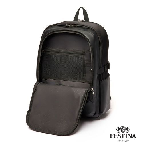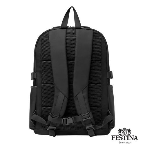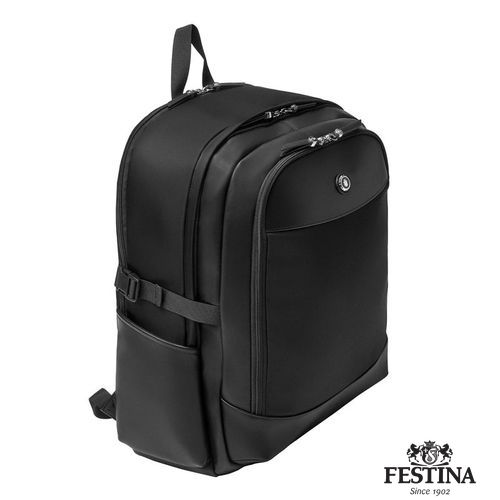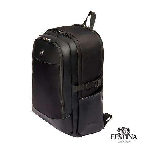 Le sac Button "Festina" est réalisé en nylon lisse avec des bordures texturées. La plaque de blazer Button surdimensionnée est empruntée à notre ligne éponyme de petits articles en cuir. Des accents chromés et des détails métalliques luxueux lui confèrent une touche finale élégante, tout en s'inscrivant dans une esthétique généralement décontractée. Chaque détail est délicatement travaillé, y compris les tirettes de fermeture à glissière, ornées du blason Festina, ainsi que la doublure Festina monogrammée. Notre sac à dos de voyage Button, disponible uniquement dans cette version noire, est un compagnon de voyage exhaustif avec ses nombreux compartiments zippés visibles et cachés. Il permet une organisation optimale de tous les éléments essentiels du voyage. Les compartiments intérieurs de ce sac de voyage sont complets : un espace dédié à l'ordinateur portable, de nombreuses fentes pour cartes, des compartiments zippés et un doghound pour attacher une clé, tout cela permet une organisation optimale. Le dos ergonomique et rembourré ainsi que les bretelles réglables ont été étudiés pour un parfait confort d'utilisation, même lors du transport de charges plus lourdes.