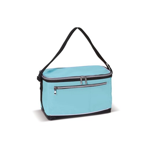 Sac isotherme polyester avec anse ajustable (120x3cm). Un grand compartiment isotherme et une petite poche sur le devant. Les deux se ferment à l’aide d’une fermeture éclair.