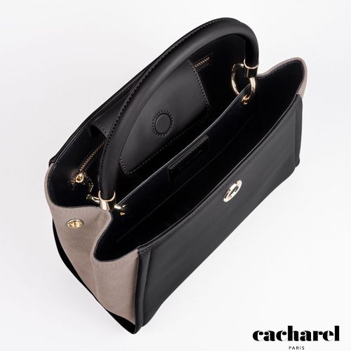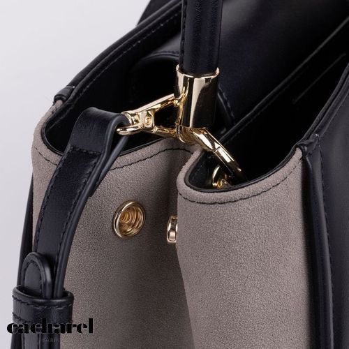 Le sac à main noir et gris de la collection Alix est doté de deux poignées de chaque côté et d'une longue sangle réglable qui permet de le porter à l'épaule ou en travers du corps. Le contraste entre les matériaux lui confère une allure classique et élégante.