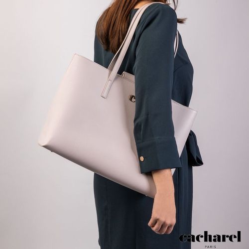 Notre nouveau sac fourre- tout "Alma" est un véritable essentiel. Léger et vaporeux, c'est l'accessoire tendance idéal pour transporter tout ce dont vous avez besoin. Il est assez grand pour transporter vos ordinateurs portables et vos dossiers ou même pour servir de sac de nuit. Ils sont réalisés en cuir végétalien grainé (PU) soigneusement choisi. La plaque de signature est une version légèrement surdimensionnée et bombée du logo "C" iconique, signée d'une gravure Cacharel. L'intérieur est vierge, mais organisé avec un petit compartiment zippé.
