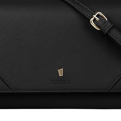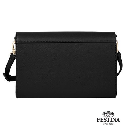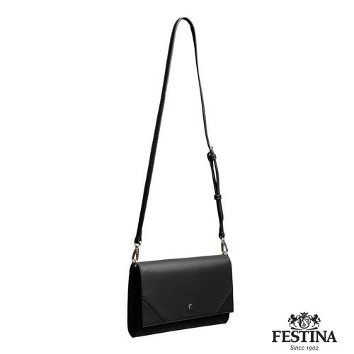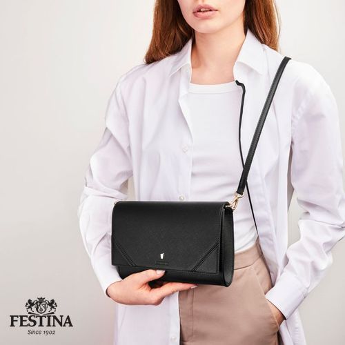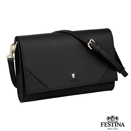 La célèbre ligne "Mademoiselle" de Festina est complétée cette saison par une nouvelle offre de sacs pour femmes. Ce sac à bandoulière est réalisé en cuir végétalien (PU) saffiano magnifiquement texturé. Chaque détail est délicatement travaillé, comme l'iconique plaque dorée signature F, présente dans toute la collection et soulignée par un logo FESTINA magnifiquement embossé. Le produit présente des intérieurs colorés, contrastés et très pratiques, à la fois ronds et compacts, avec un compartiment zippé pour organiser tous vos essentiels. Cette version noire a un intérieur beige contrasté. La sangle est réglable en longueur.