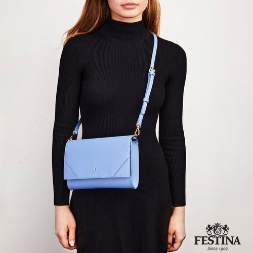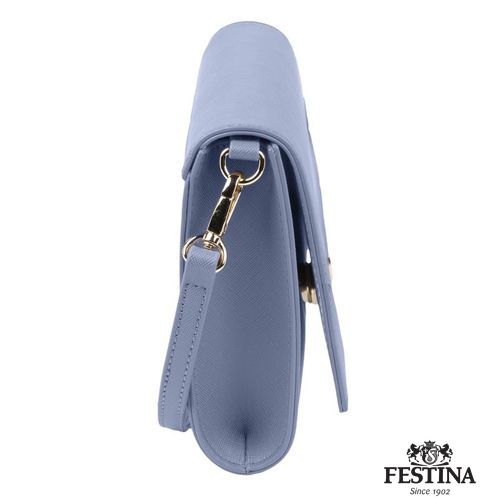 La célèbre ligne "Mademoiselle" de Festina est complétée cette saison par une nouvelle offre de sacs pour femmes. Ce sac à bandoulière est réalisé en cuir végétalien (PU) saffiano magnifiquement texturé. Chaque détail est délicatement travaillé, comme l'iconique plaque dorée signature F, présente dans toute la collection et soulignée par un logo FESTINA magnifiquement embossé. Le produit présente des intérieurs colorés, contrastés et très pratiques, à la fois ronds et compacts, avec un compartiment zippé pour organiser tous vos essentiels. Cette version bleu clair a un intérieur contrasté de couleur marine. La sangle est réglable en longueur.