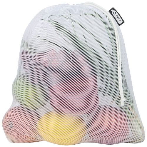Sac à sublimation réutilisable pour les produits frais, fabriqué en polyester 100 % recyclé de 60-65 g/m2. Marquage sur toute la surface par sublimation. Emballage individuel en option. Fabriqué en Europe.