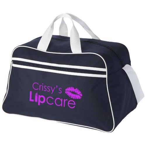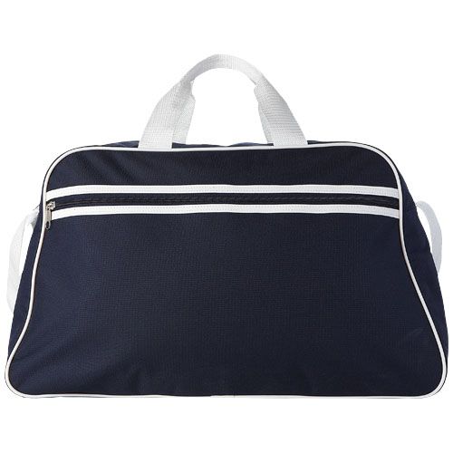 Sac de sport avec compartiment principal et poche frontale zippés.
