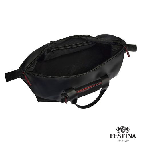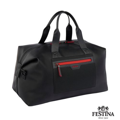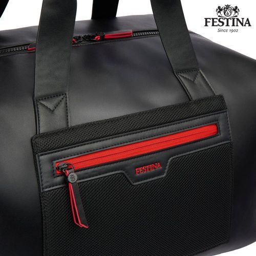 Le sac de week- end "Black Edition" de Festina allie un design élégant, une fonctionnalité spacieuse et une légèreté pratique. Fabriqué en cuir vegan noir mat avec des accents innovants en maille, il reflète l'inspiration active et l'esthétique contemporaine de la ligne. Doté d'un compartiment principal spacieux, d'une poche frontale zippée pour un accès rapide et d'une autre poche zippée à l'intérieur, ce sac est conçu pour accueillir tous les objets essentiels tout en conservant un profil élégant. La fermeture à glissière avant, le bord des tirettes de fermeture à glissière et le logo sont rehaussés de rouge vif, créant un contraste audacieux avec la base noire minimaliste. Ces détails vibrants insufflent une énergie dynamique au design tout en restant fidèles à l'engagement de Festina en faveur d'un savoir- faire propre et raffiné. Parfait pour les voyages ou les modes de vie actifs, ce sac de week- end offre un mélange harmonieux de praticité, de modernité et d'élégance.