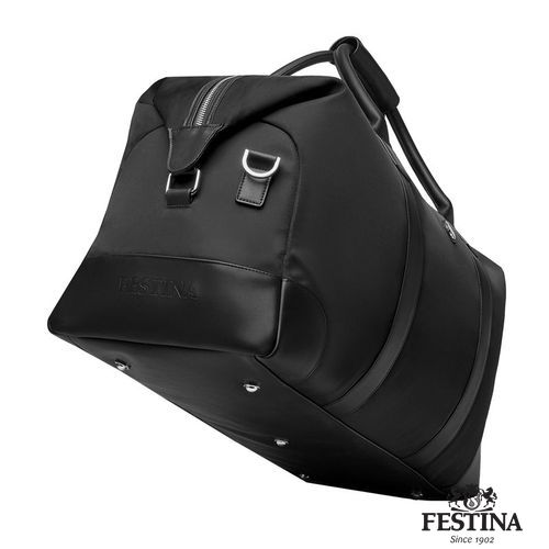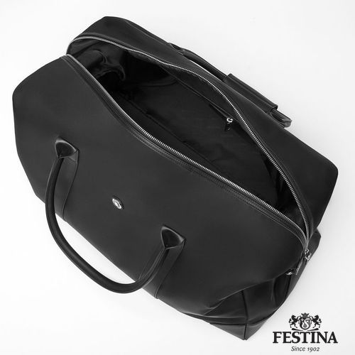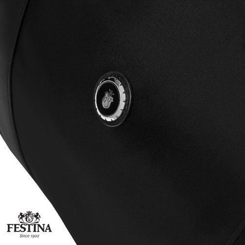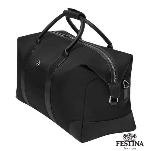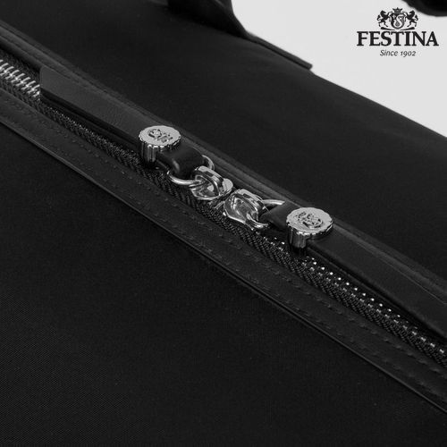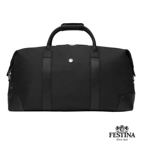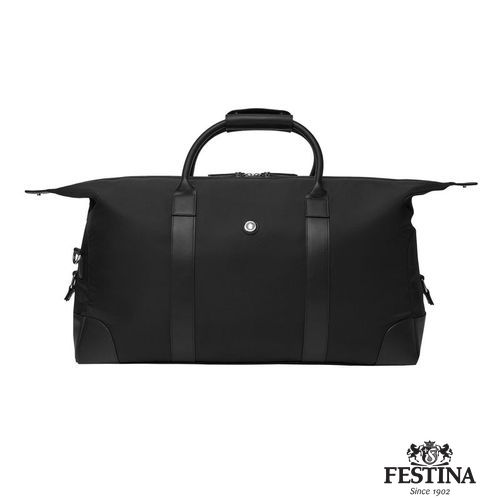 Le sac Button "Festina" est réalisé en nylon lisse avec des bordures texturées. La plaque de blazer Button surdimensionnée est empruntée à notre ligne éponyme de petits articles de maroquinerie. Des accents chromés et des détails métalliques luxueux Les accents chromés et les détails métalliques luxueux lui confèrent une touche finale élégante, tout en s'inscrivant dans une esthétique généralement décontractée. La ligne Button est disponible en deux couleurs : une version entièrement noire avec une plaque de signature émaillée, tandis que l'autre version mélange le nylon marine avec du cuir végétal marron et des garnitures chromées. Les deux versions ont une élégance décontractée et sont faciles à combiner. Chaque détail est délicatement travaillé, y compris les tirettes de fermeture éclair, ornées du blason Festina. Ces élégants sacs de week- end sont robustes et spacieux tout en étant légers à porter. Ils comprennent un compartiment zippé et une sangle réglable.