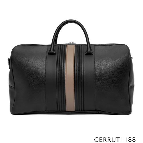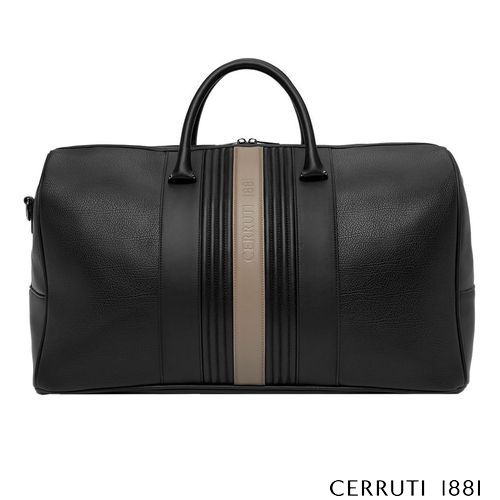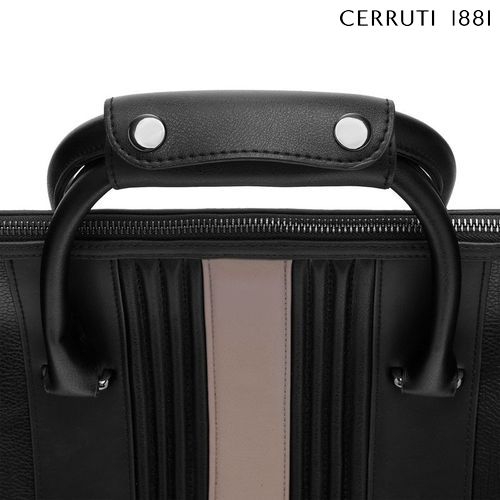 La ligne de voyage CERRUTI 1881 "Delano" joue sur les contrastes de couleurs et de textures, avec un cuir végétalien (PU) magnifiquement texturé et une bande centrale beige luxueusement embossée du logo CERRUTI 1881.