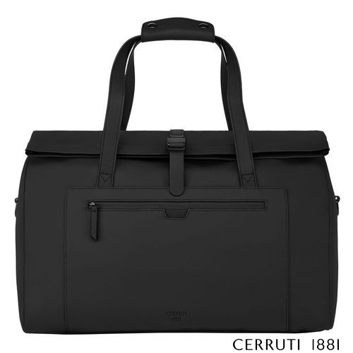 Designed with form as much as function in mind, this casual- inspired weekend bag is expressed in timeless black, paired with elegant black matte details for a clean, minimal attitude. A subtle utilitarian aesthetic is expressed through its rolled- top closing construction, perfectly finished with an integrated magnetic closure engraved with the RR signature. The silhouette is light and roamy, created for effortless movement and everyday escape. A flat pocket to the front ensures easy access, while the detachable webbing strap allows adaptable carry. Inside, a spacious roamy interior reveals a refined monogram lining, finished with a zipped inner pocket for secure organization. It is the perfect accessory for someone with a minimalist yet casual and modern aesthetic.