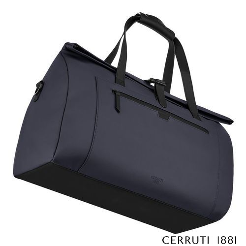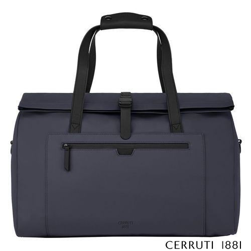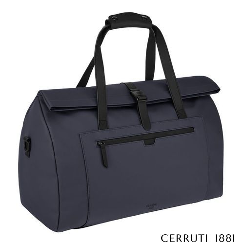 Designed with form as much as function in mind, this casual- inspired weekend bag is rendered in a deep navy tone, elevated by elegant black matte details. A subtle utilitarian aesthetic is expressed through its rolled- top closing construction, perfectly finished with an integrated magnetic closure engraved with the RR signature. The silhouette is light and roamy, created for effortless movement and everyday escape. A flat pocket to the front ensures easy access, while the detachable webbing strap allows adaptable carry. Inside, a spacious roamy interior reveals a refined monogram lining, finished with a zipped inner pocket for secure organization. It is the perfect accessory for someone with a minimalist yet casual and modern aesthetic.