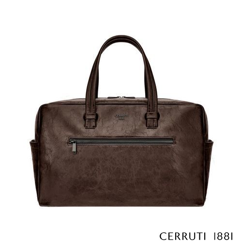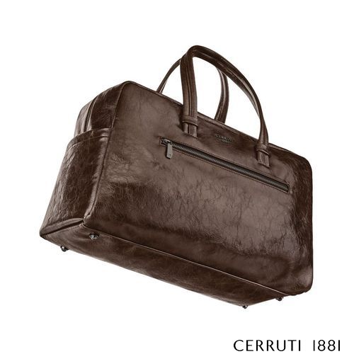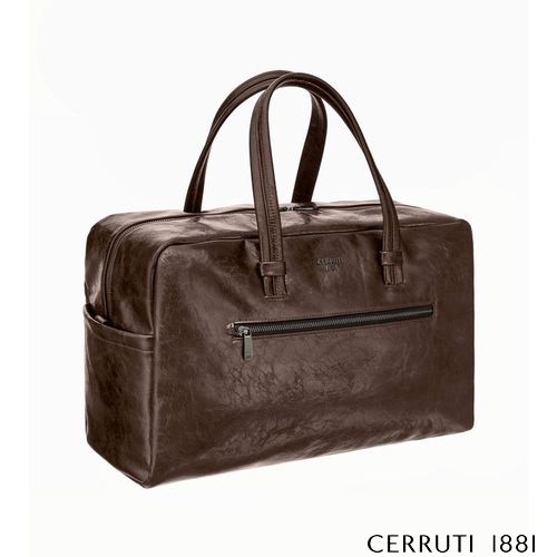 The Hudson is our most fashion- forward weekender bag, defined by beautifully textured, vintage- inspired surfaces in the deepest chocolate hue, luxuriously finished with gunmetal accents, from the Cerruti 1881 signature to the newly developed RR zippers. It offers a roamy yet compact volume, perfectly balanced for refined short stays and weekend escapes. Flat side pockets on each side add functional ease, while a front zipped pocket is adorned with the beautiful new signature puller. Inside, the tone- on- tone monogrammed lining reinforces the understated character of the design, completed with a practical zipped inner pocket for secure organisation.