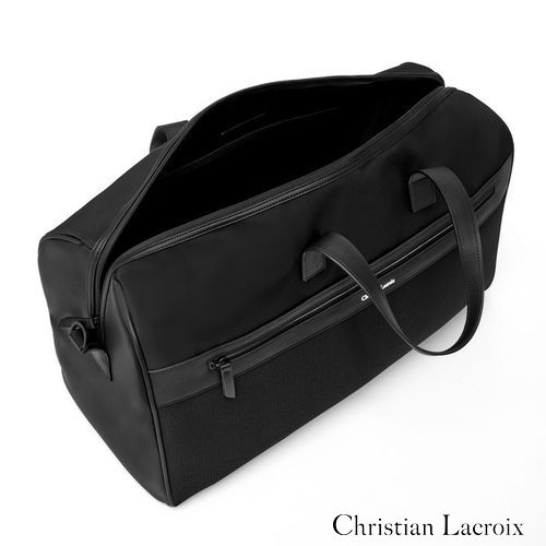 Voici le sac de voyage Lacroix Whiteline - une fusion de matériaux, dont le nylon, la maille et le PU lisse, créant une expérience tactile moderne. Le jeu sur les différentes textures noires confère une touche contemporaine à l'ensemble du design. Ce qui distingue ce sac de voyage, ce sont les détails blancs frais et contrastés de la fermeture à glissière - une fermeture à glissière blanche inversée qui crée un effet inattendu de "ligne blanche", ajoutant une touche moderne et active. La touche finale est le logo Christian Lacroix exécuté en TPU blanc, qui s'harmonise avec le détail de la fermeture éclair et confère à la ligne une touche résolument contemporaine. L'intérieur présente une doublure monogrammée. Ce sac de voyage est léger et pratique.