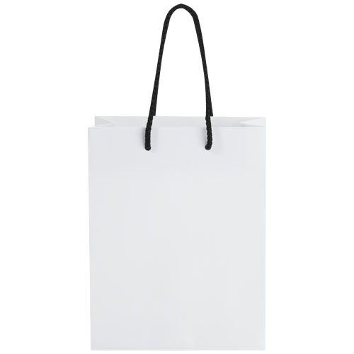 Sac moyen en papier integra de 170 g/m2 fait à la main (18 x 9 x 23 cm) avec poignées torsadées en plastique. L'avant et l'arrière personnalisables offrent suffisamment d'espace pour l'impression d'un logo, ou de tout autre design, ce qui en fait un excellent outil de marketing commercial. Fabriqué en Europe. 100% recyclable.
