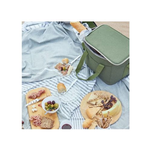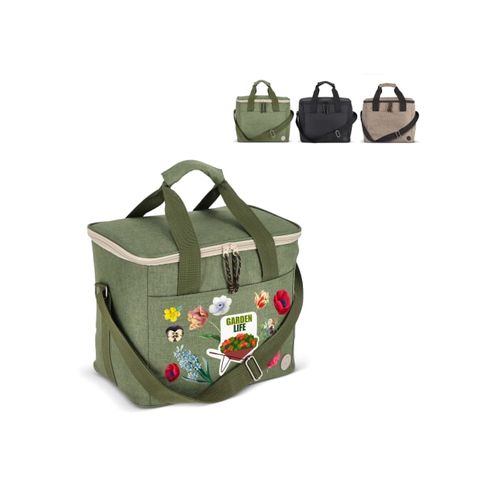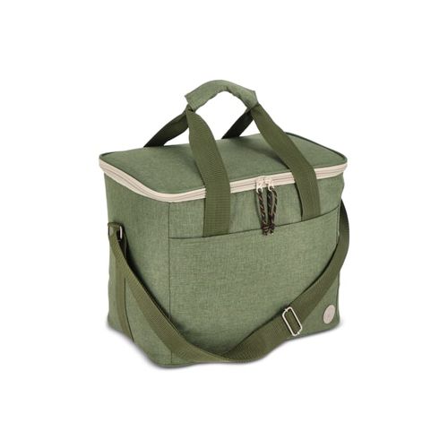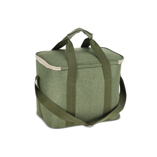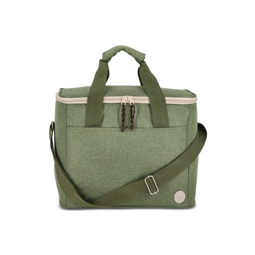 Sac isotherme spacieux, élégant et sportif en tissu rPET vert. Beaux détails en beige et noir. Pratique, il est doté d'une poignée et d'une bandoulière réglable.Matières :R- PET